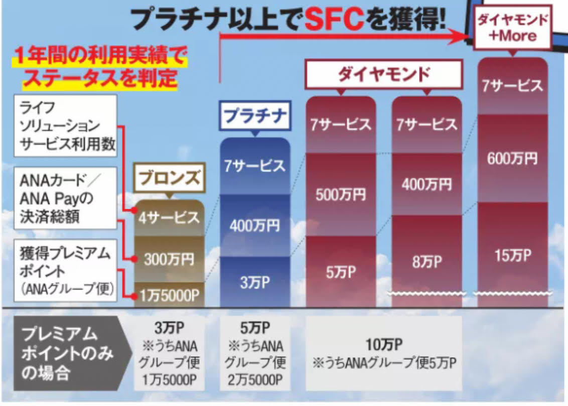ダイヤモンドステータスを目指すには、フライトだけではなく、このライフソリューションの条件を複数クリアすることも必要です。